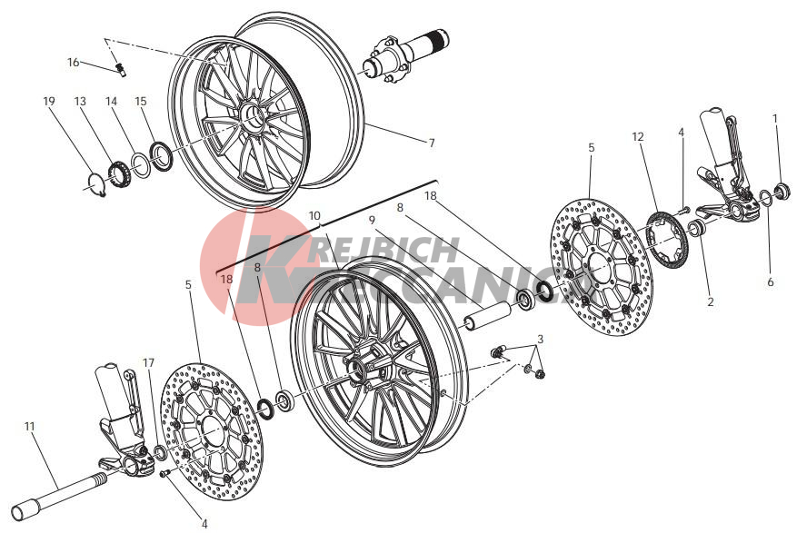Front and rear wheels