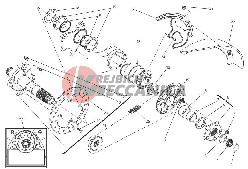 Rear wheel axle