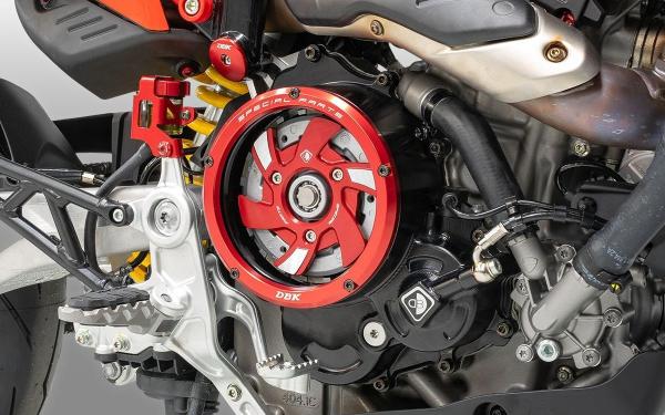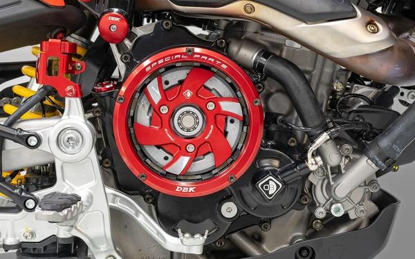 Clutch cover kit with transparent window, entirely machined from high-quality aluminum alloy using 3D technology, ensures strength and precision. The surface is treated with colored anodization, which not only adds a distinctive aesthetic touch but also provides superior protection against wear and corrosion.