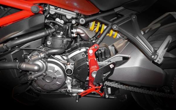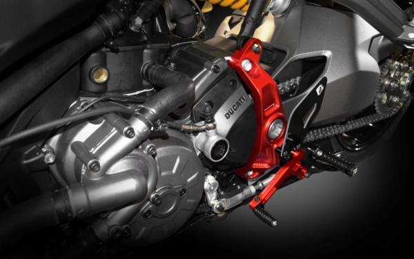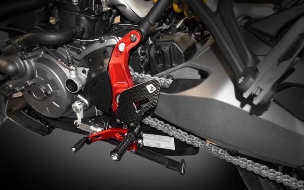 CNC, machined from solid 3D, ANODIZATION COLOR, CARBON GUARDS (ECO VERSION ALUMINIUM), FOLDING PEDALS (NO ECO VERSION) Color: RED-RED
