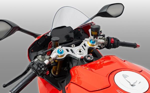 MotoGP-derived triple clamp, designed to improve front-end flexibility and reduce chattering, ensuring greater stability and precision in handling. It replaces the original clamp without the need for modifications. Equipped with steel hardware for maximum strength and reliability.