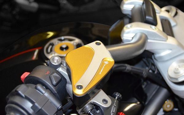 Brake / clutch fluid reservoir caps , billet aluminium, colored anodized surface and Special processing of diamond Color: GOLD