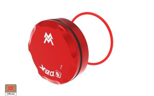 Brake fluid reservoir cap machined from solid light alloy, with subsequent colored surface anodization treatment. Color: RED